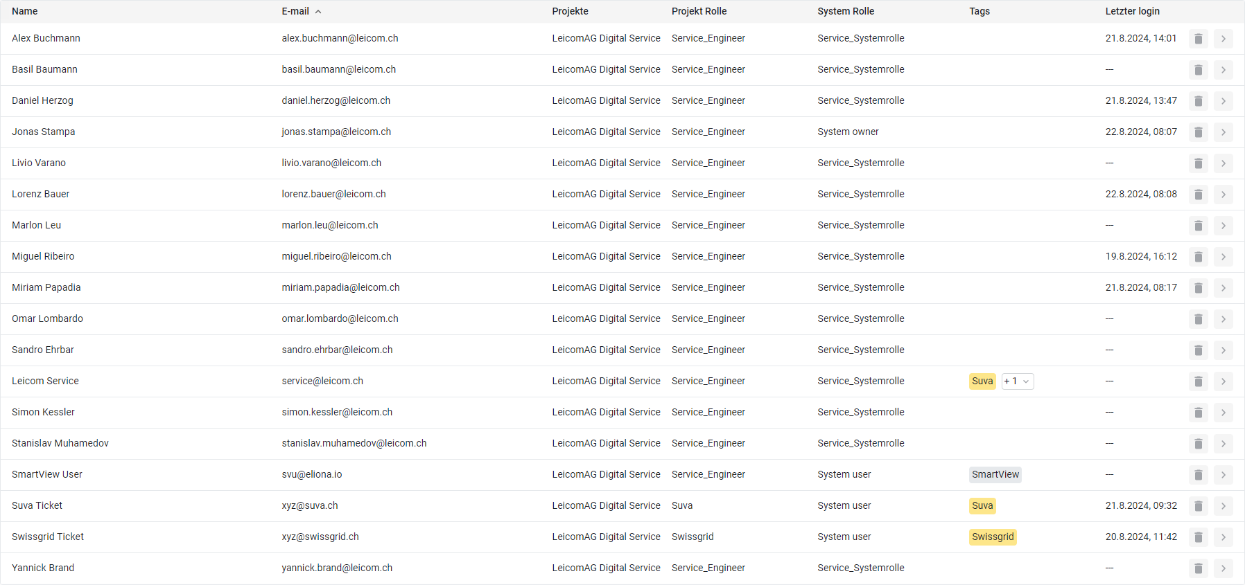 Jeder Kunde erhält ein individuelles Login bzw. einen eigenen Benutzer, bei Bedarf auch mehrere. Für das Serviceteam wird ebenfalls für jeden Mitarbeiter ein individueller Benutzer erstellt. Zusätzlich gibt es einen allgemeinen Service-Benutzer, dessen Aufgabe es ist, Tickets an die richtigen Mitarbeiter zu verteilen. Sollte es nur einen Servicemitarbeiter geben, entfällt diese Mechanik. Zur besseren Übersicht werden den Benutzern des Kunden die zuvor erstellten Tags zugeordnet. ->Benutzer