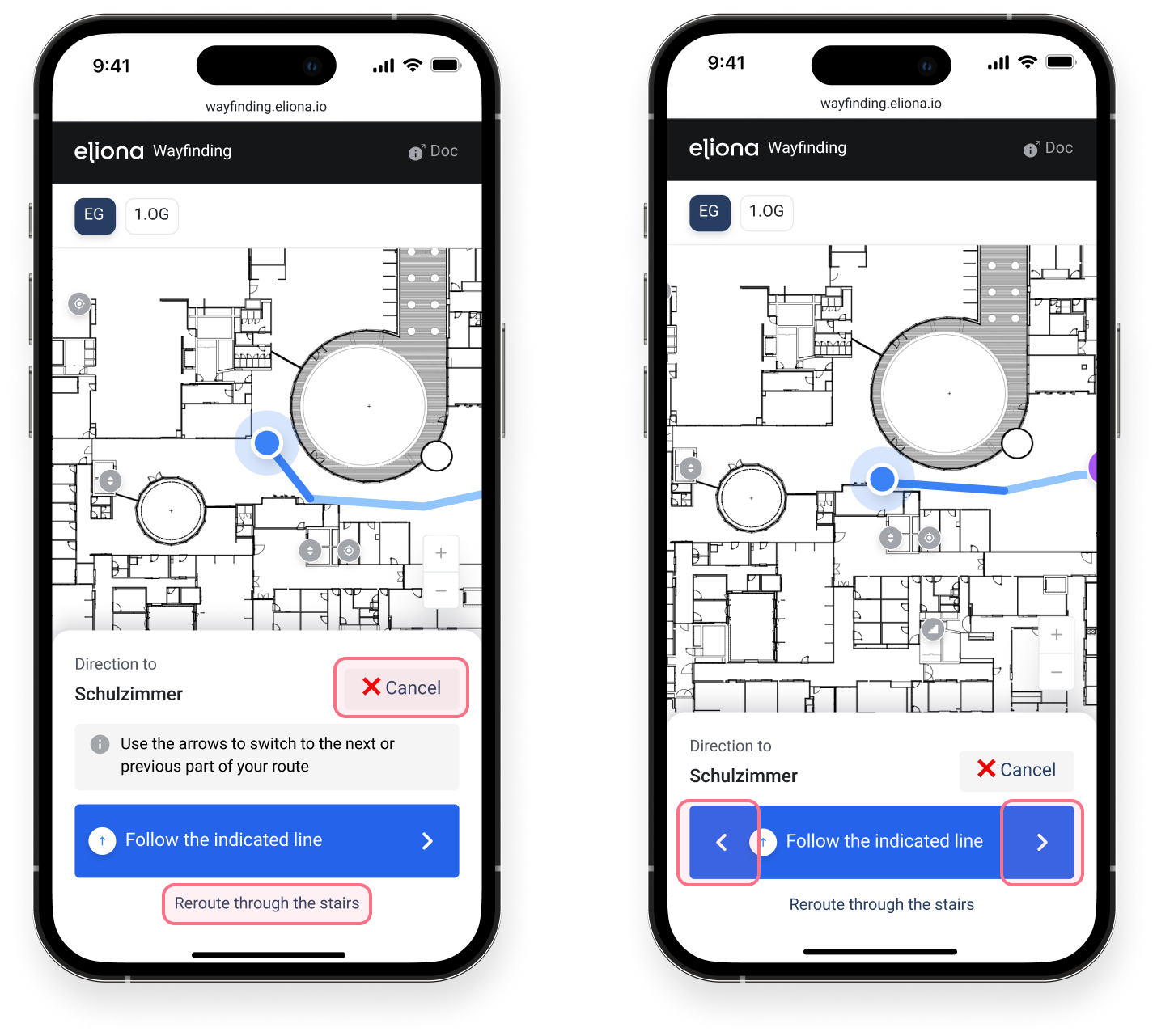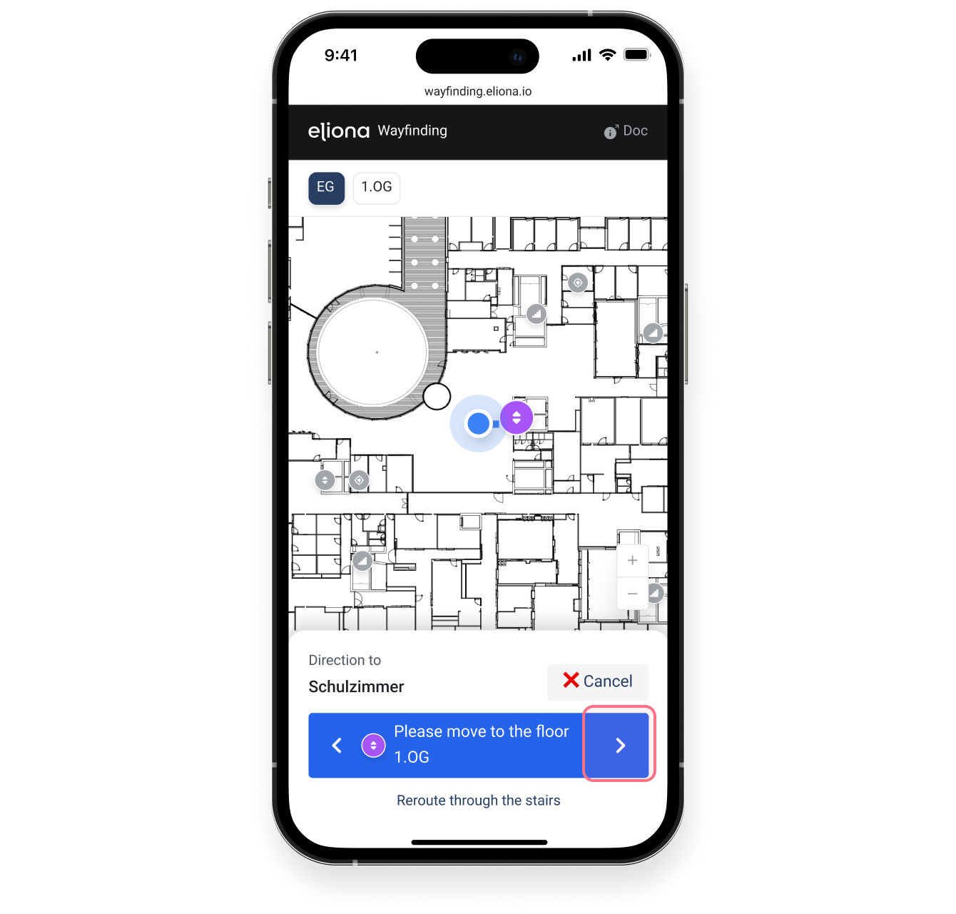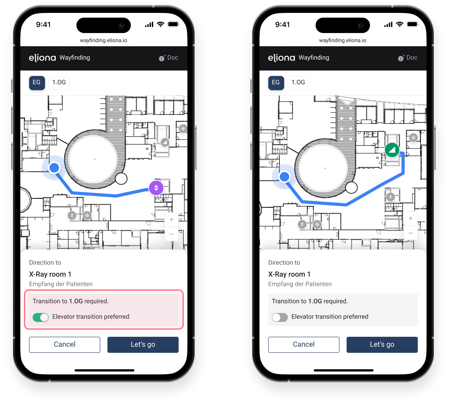 5.2 Route zwischen Treppe und Aufzug wechseln