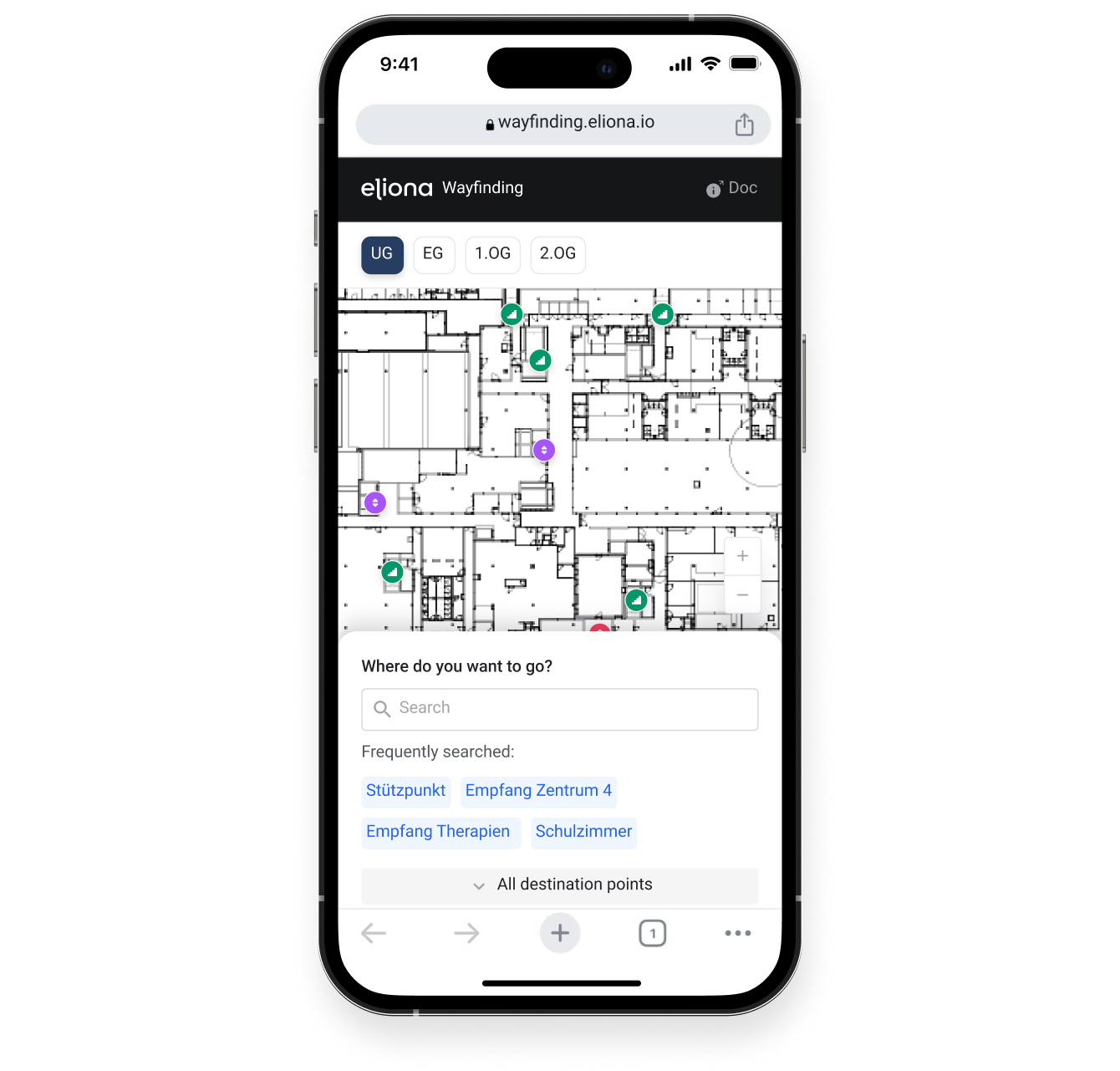 “Wayfinding” wurde entwickelt, um Ihnen zu helfen, schnell den gewünschten Zielort im Gebäude zu finden.