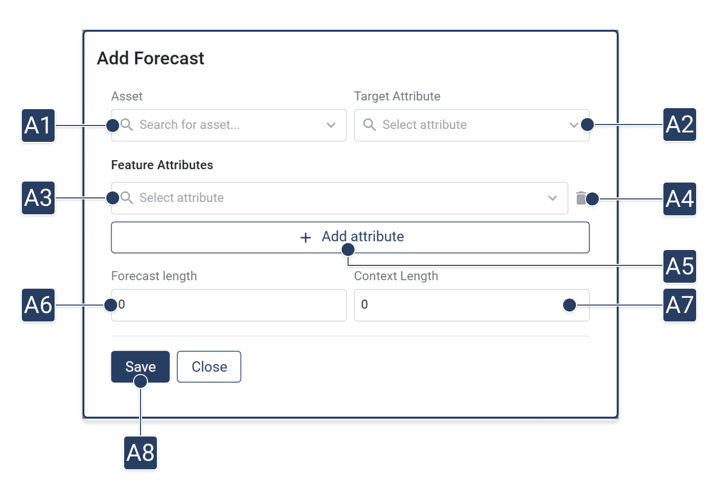 2. Wählen Sie im Feld **\[A1] Asset auswählen** das gewünschte Asset aus dessen Attribut Sie vorhersagen wollen.