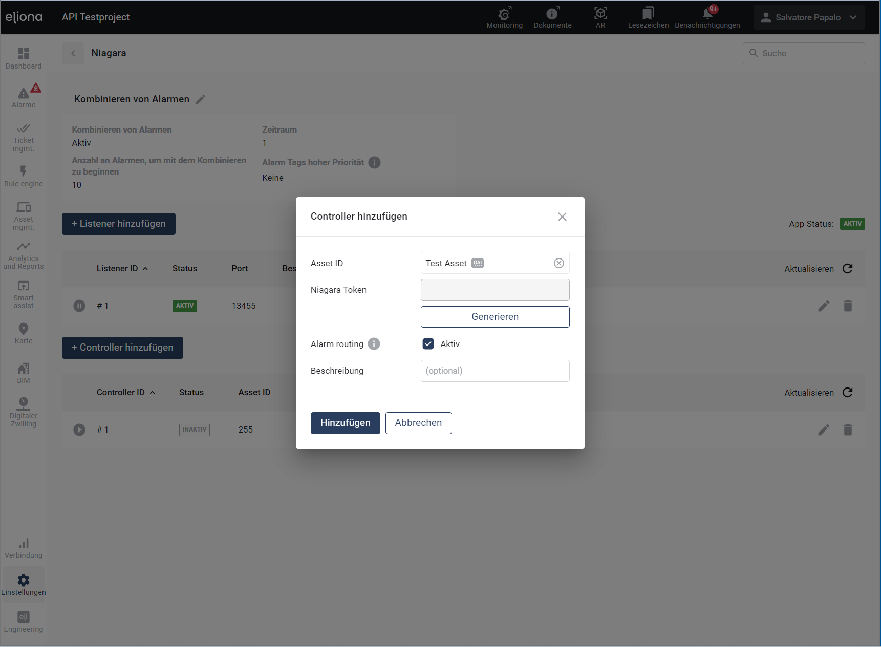 1. Erstellen Sie zuerst ein [Eliona-Asset](https://docs.buildings.ability.abb/collection/german-14.2-freezed/apps/apps/broken-reference) für den entsprechenden Niagara-Controller. Wählen Sie dieses [Asset ](https://docs.buildings.ability.abb/collection/german-14.2-freezed/apps/apps/broken-reference)anschliessend aus. Das [Asset ](https://docs.buildings.ability.abb/collection/german-14.2-freezed/apps/apps/broken-reference)muss zwingend vom [Asset Typ](https://docs.buildings.ability.abb/collection/german-14.2-freezed/apps/apps/broken-reference) "Anlage" sein.&#x20;
