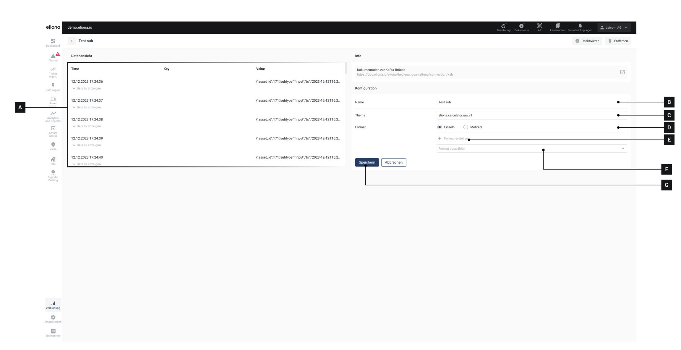 Geben Sie hier das Thema an, das abonniert werden soll. Entspricht dem Topic bei MQTT