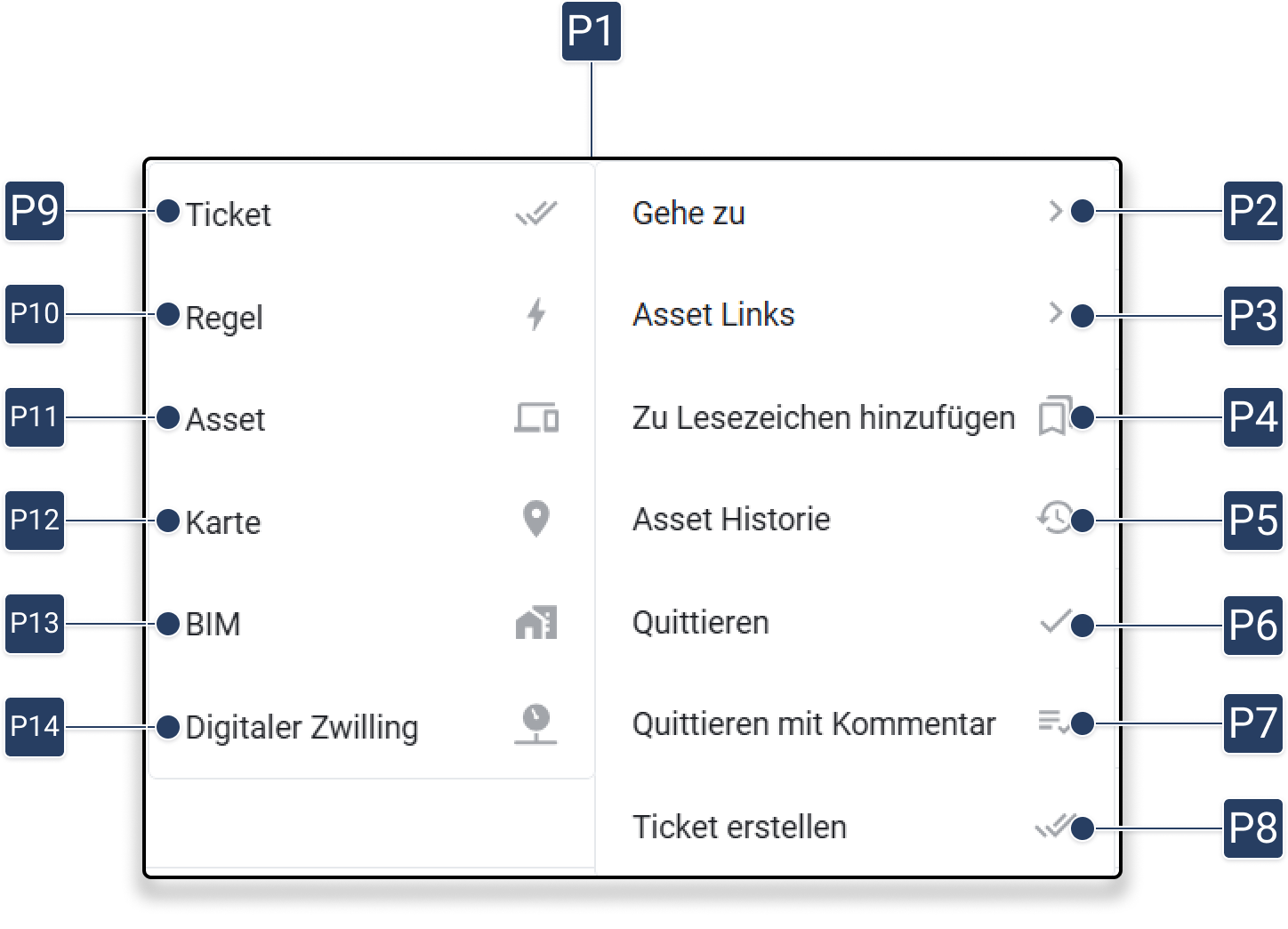 Das ↗ BIM des entsprechenden Assets öffnen. ◈ Wenn dem Asset kein BIM zugeordnet ist, wird das BIM-Menü aufgerufen.