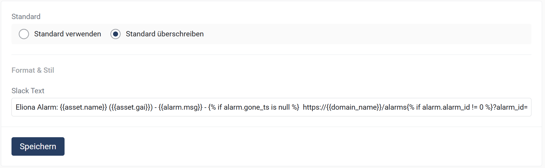 Speichern: Klicken Sie auf "Speichern", um die Änderungen zu übernehmen. Alle zukünftigen Benachrichtigungen verwenden dann das angepasste Template.