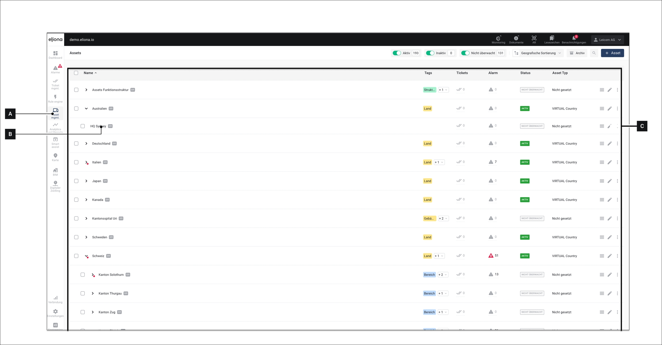 Klicken Sie auf den Namen des Assets, das Sie konfigurieren wollen [B] ▷ Die -> "Asset-Details" öffnen sich (Abb. 1)