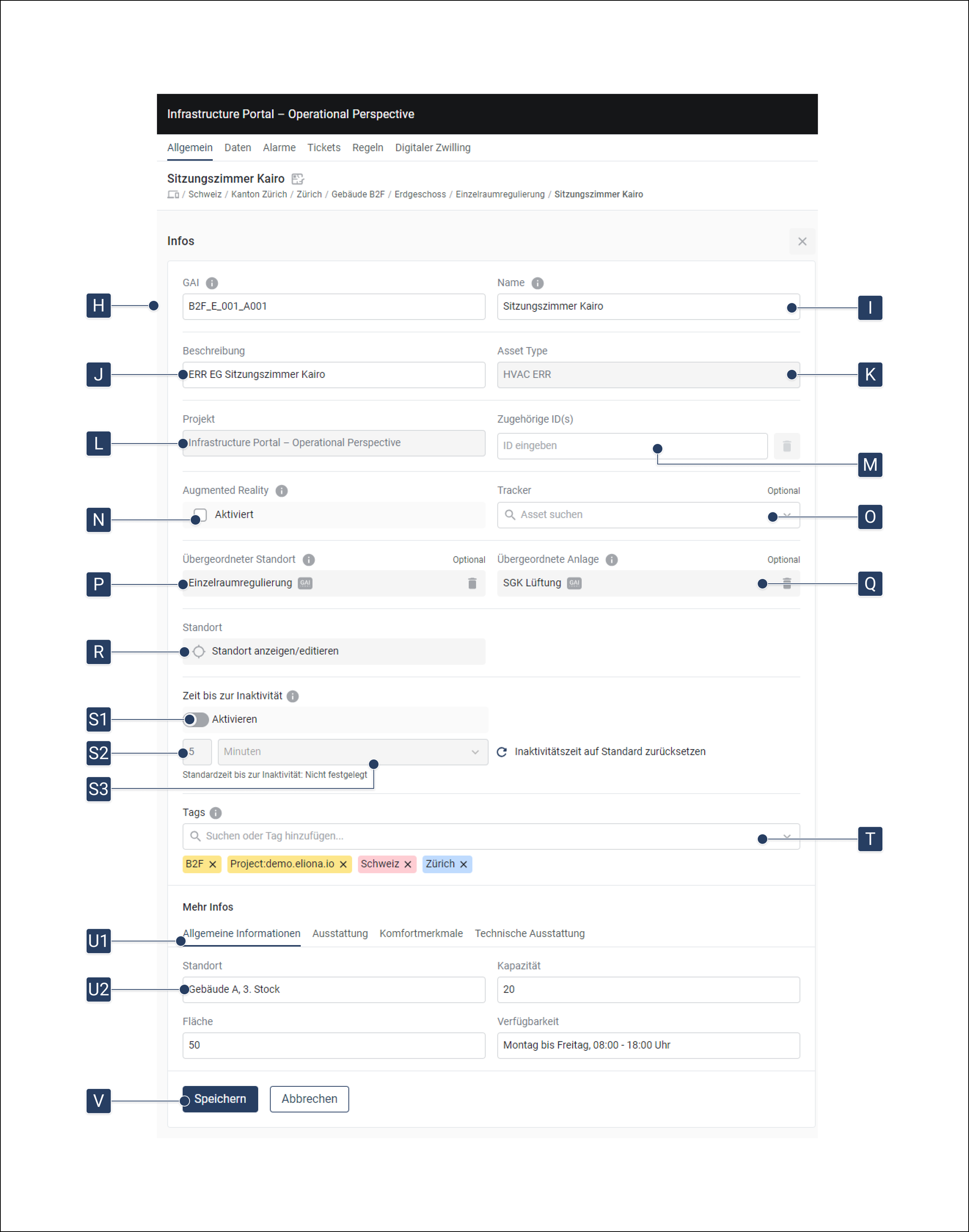 Hier können Sie die Werte der ↗ Asset-Charakteristiken individuell ändern und präzisieren.