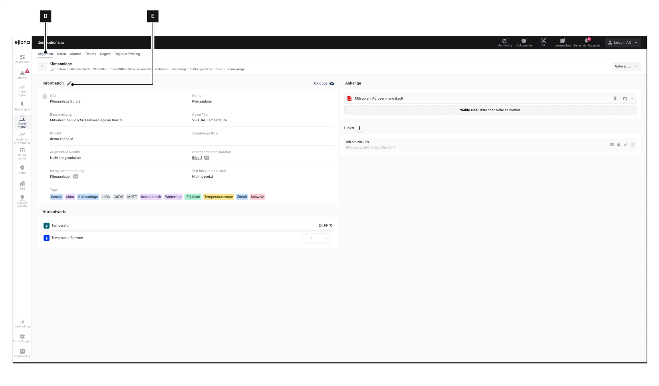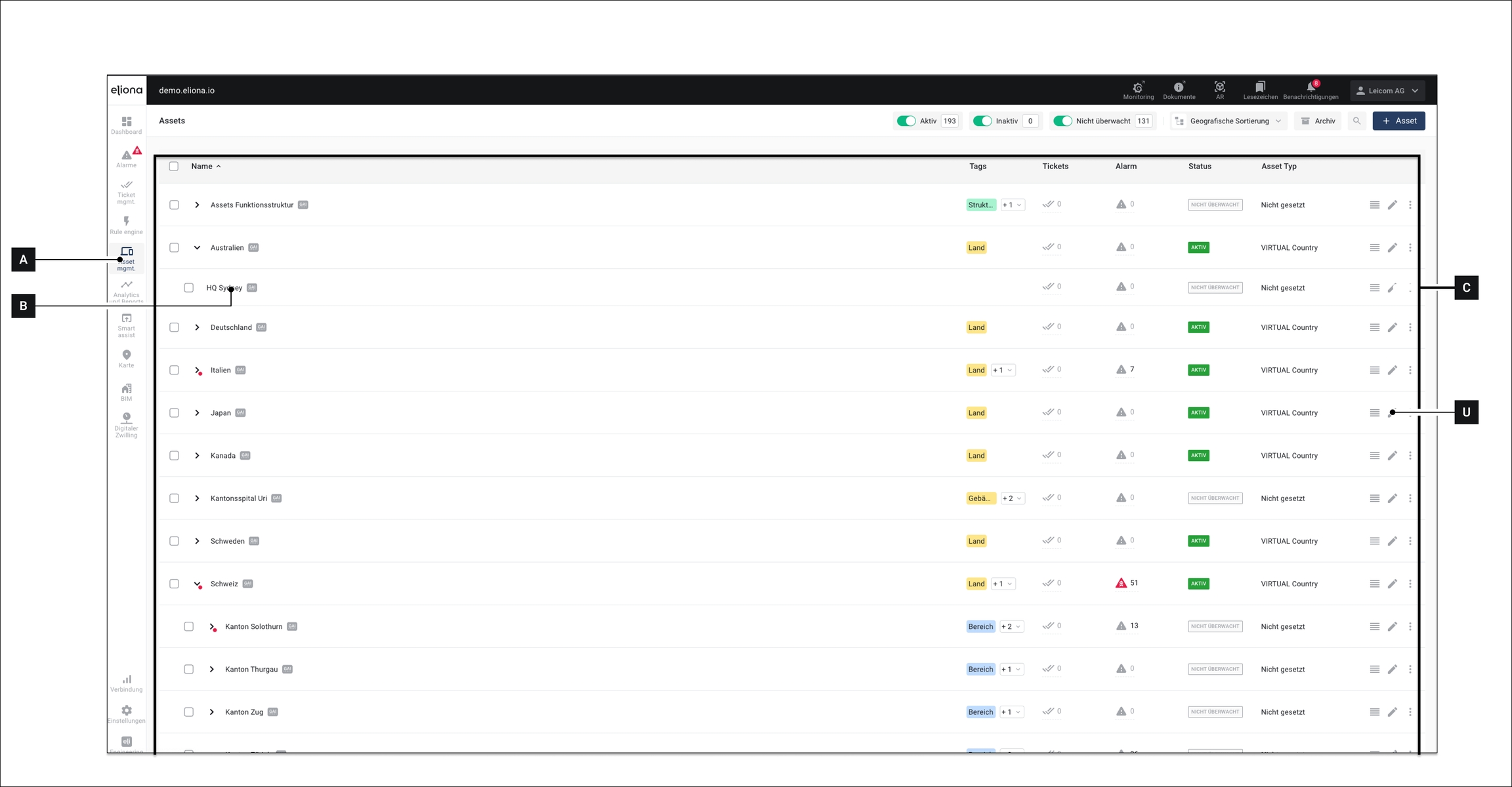 Klicken Sie auf den Namen des Assets, das Sie konfigurieren wollen [B] ▷ Die ↗ Asset-Details öffnen sich (Abb. 2)