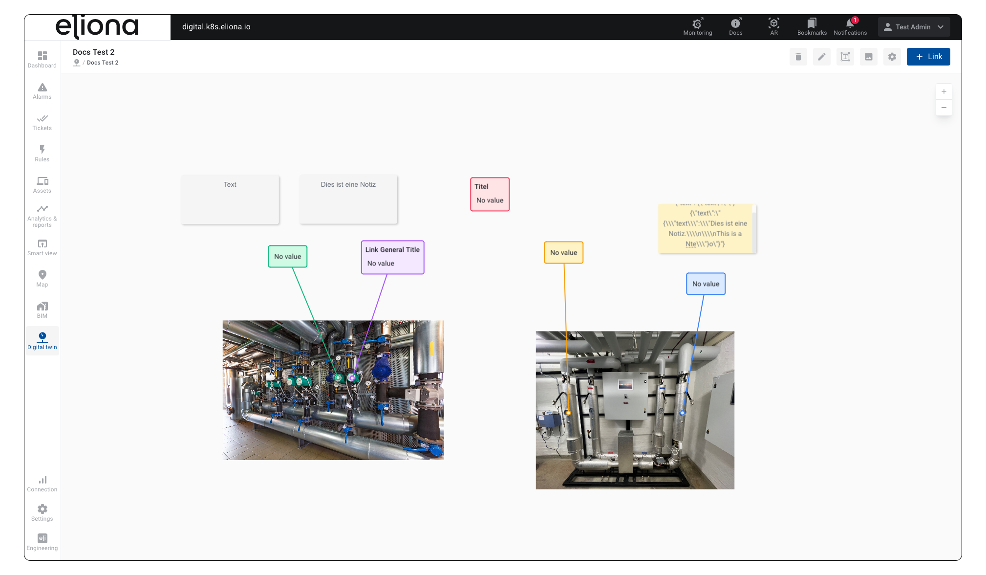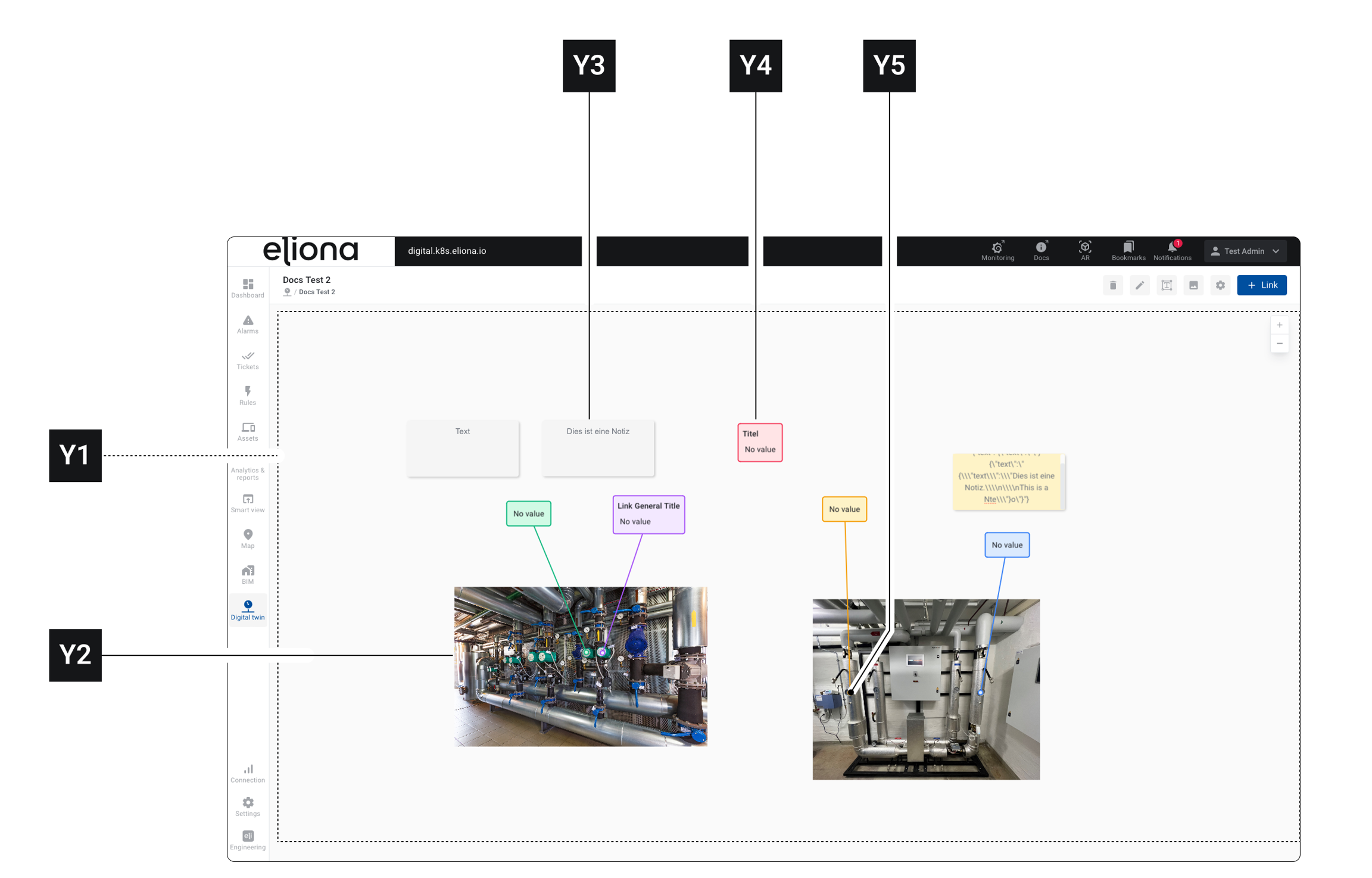 In Eliona besteht ein Digital Twin aus einem oder mehrere Bildern die frei auf einer Leinwand angeordnet werden können.