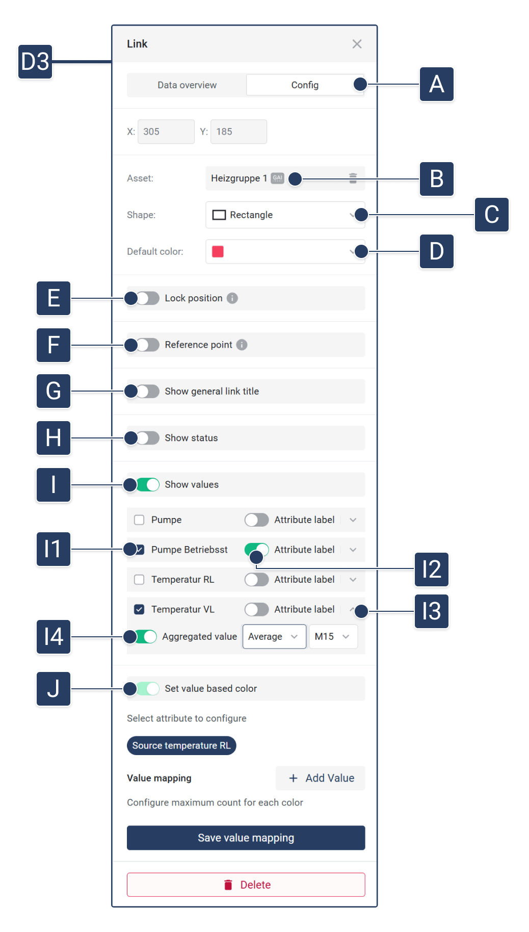 Klicken Sie auf "Config" [A] ▷ die Konfiguration [D3] wird angezeigt.