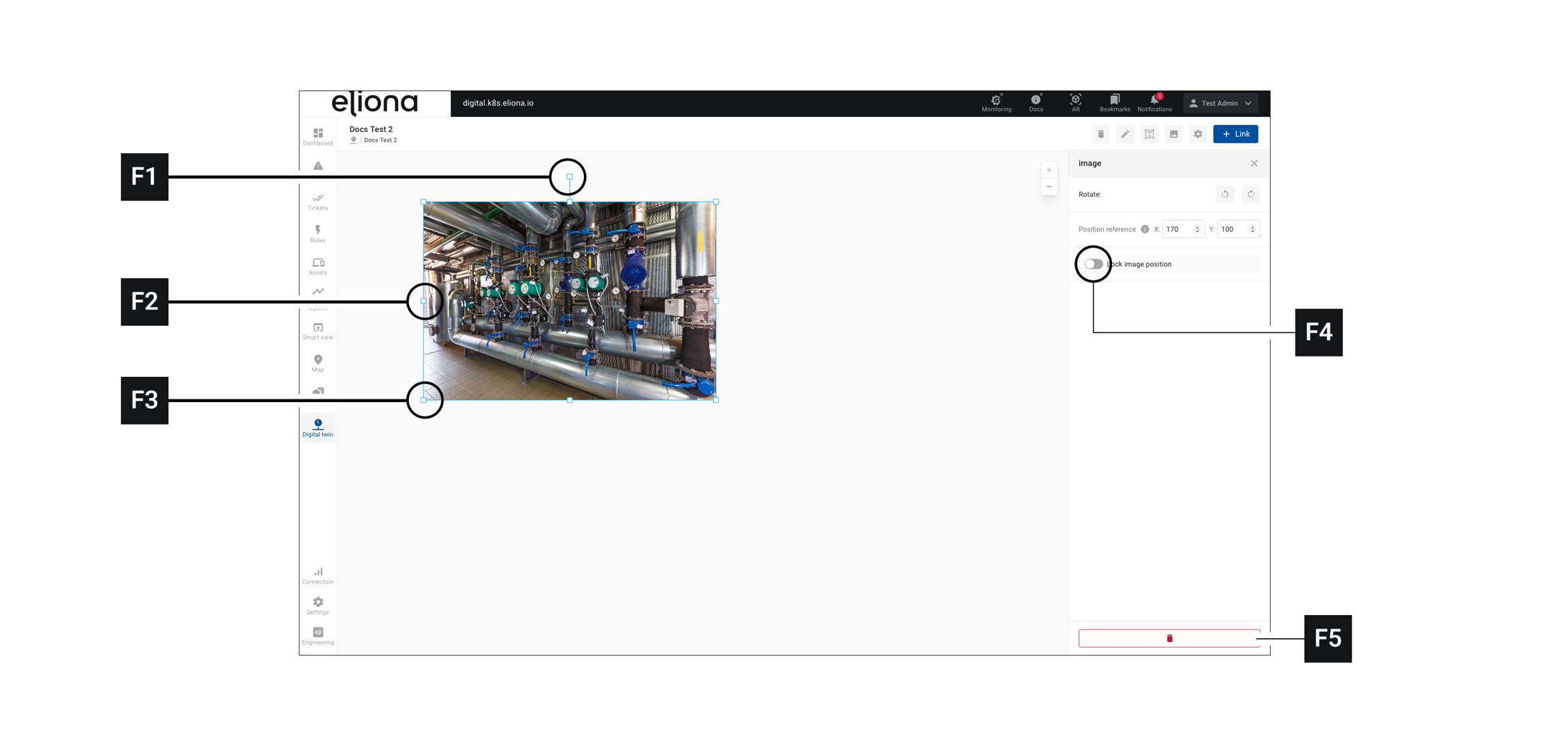 Der Referenzpunkt kann über einem Bild platziert werden, um die Verständlichkeit des Digital Twins zu erhöhen.