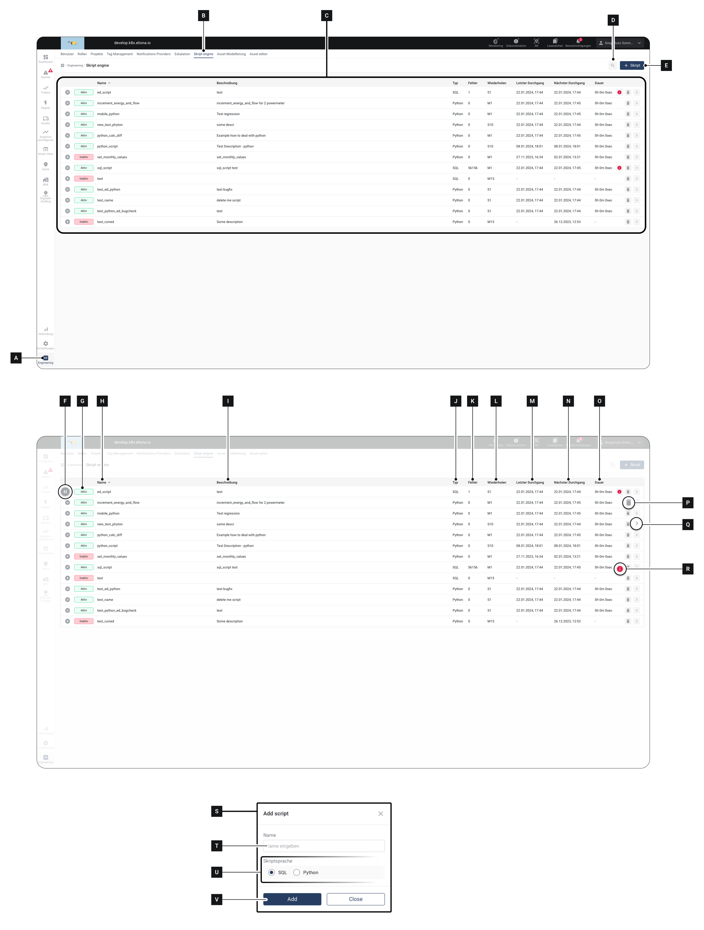 Die Skript Engine bietet Ihnen die Möglichkeit, Daten in Eliona mittels Python- und SQL-Skripten zu bearbeiten.
