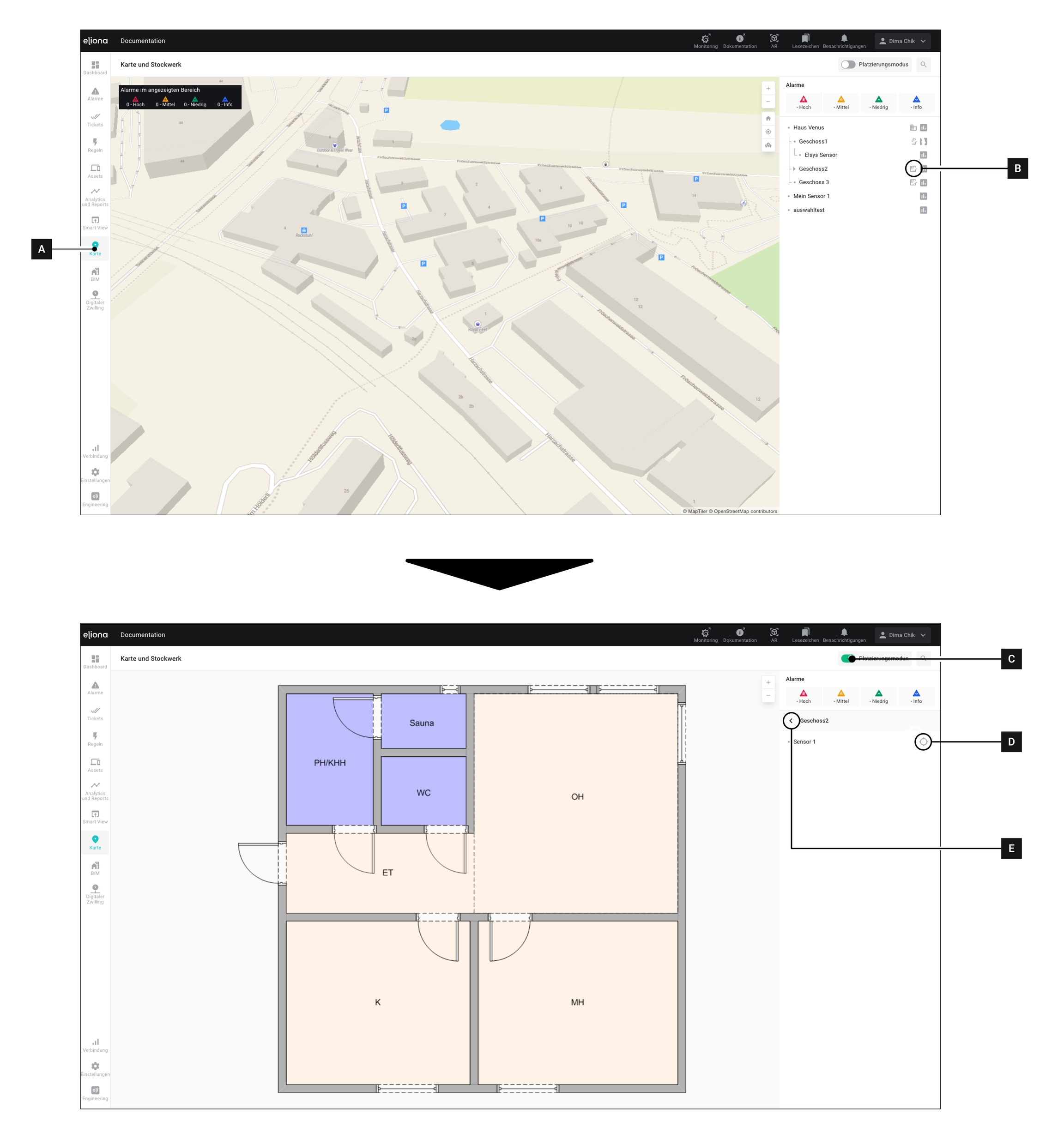 Assets auf einem Stockwerk platzieren