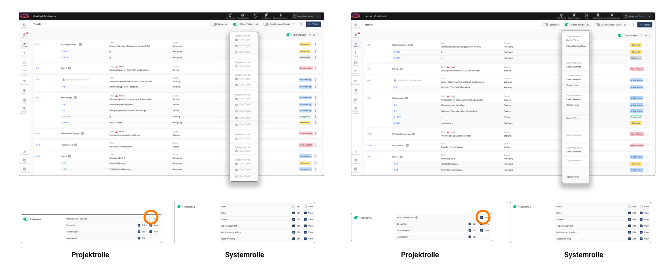 ▷ In diesen Tickets sieht der Nutzer nicht den Namen des Assets