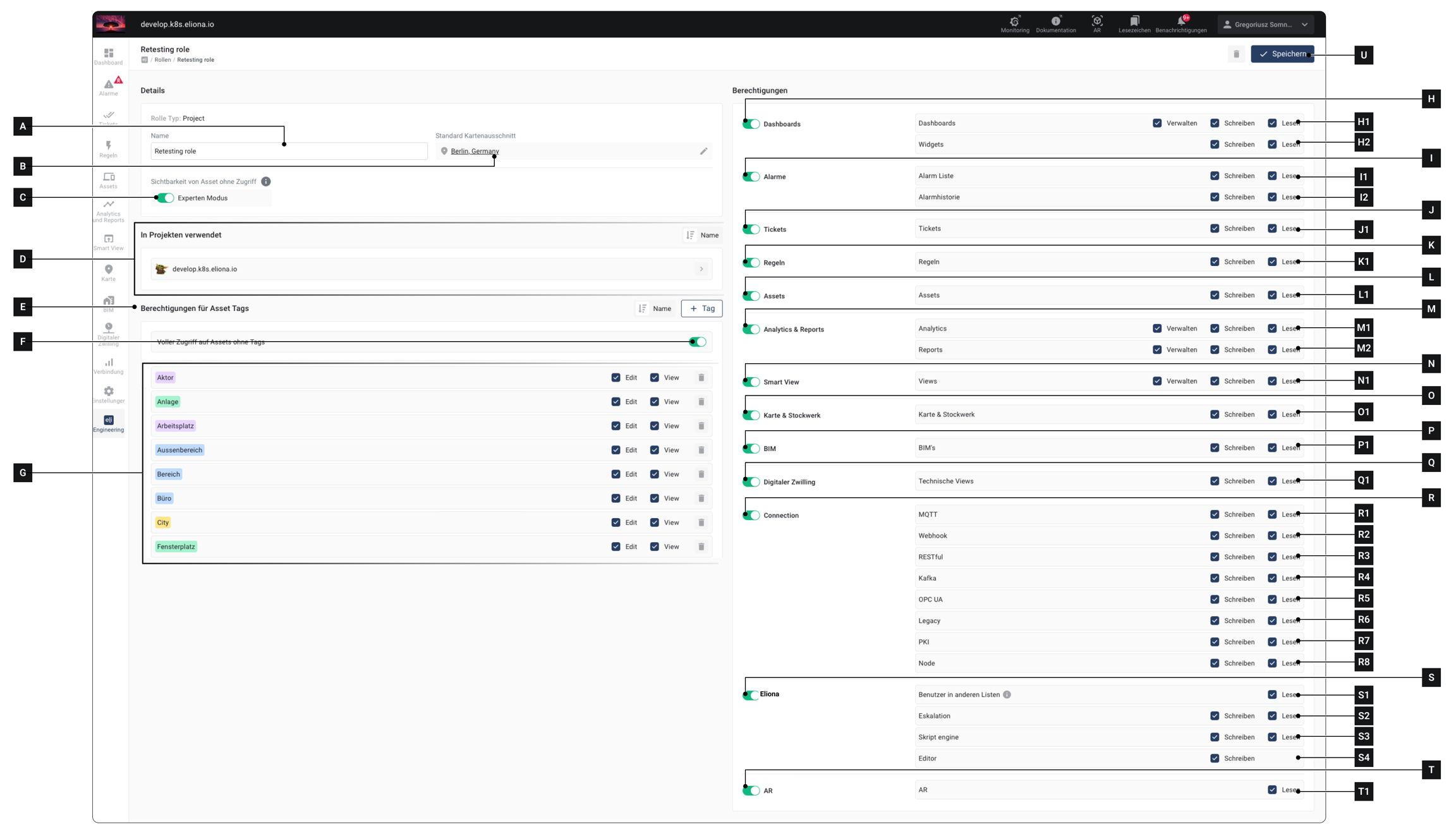 Beispiel: Sie fügen den Tag "Lüftungsanlagen" hinzu. Diese Rolle wird ausschliesslich auf Assets zugreifen können, die mit dem Tag "Lüftungsanlagen" versehen sind.