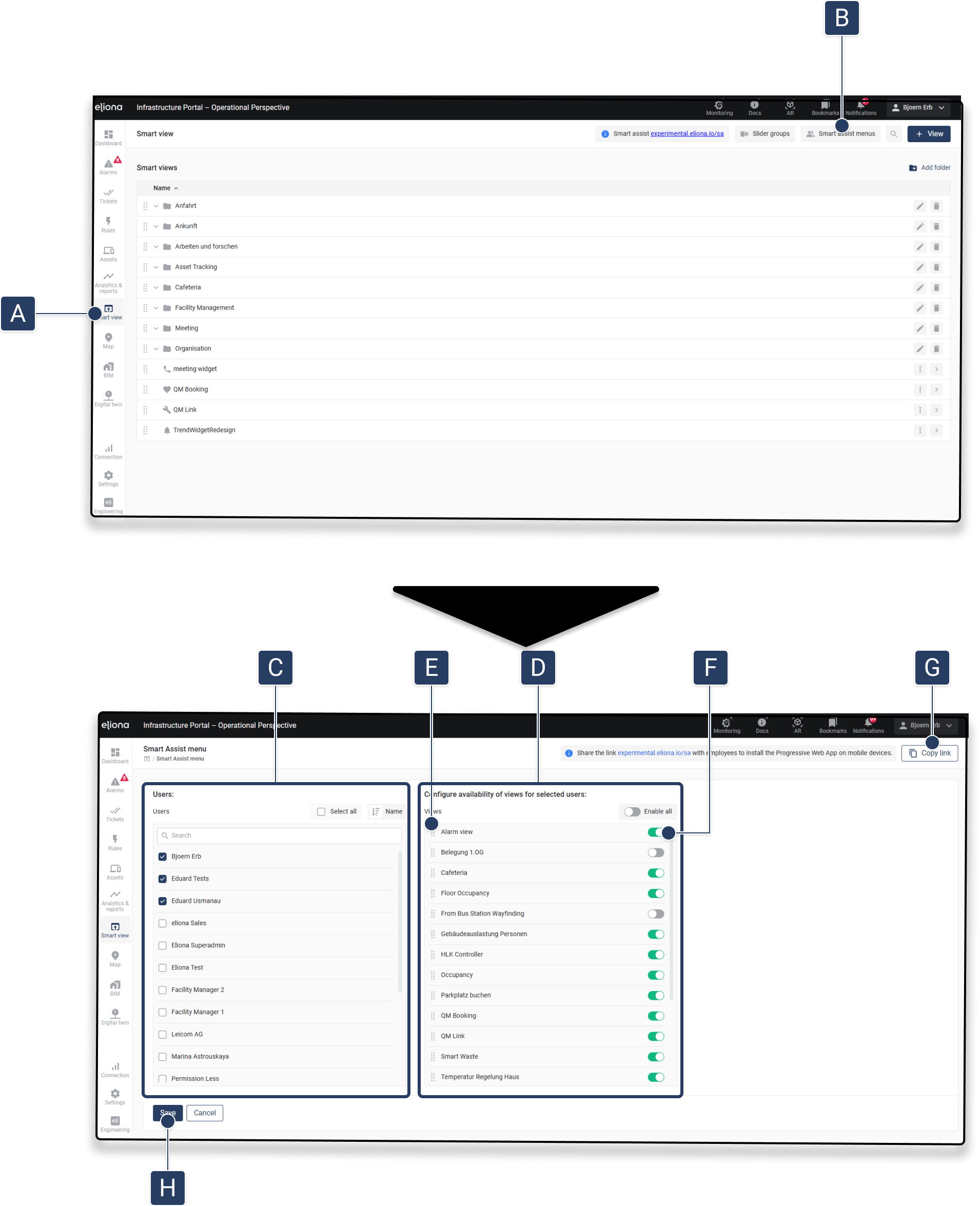 Smart Views können auch ohne Eliona-Account angesehen werden - Für Smart Assist ist immer ein Eliona Account notwendig