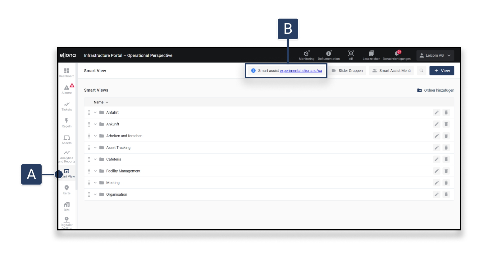 Öffnen Sie den Menüpunkt Smart View [A] ▷ Der Arbeitsbereich "Smart Views" öffnet sich.