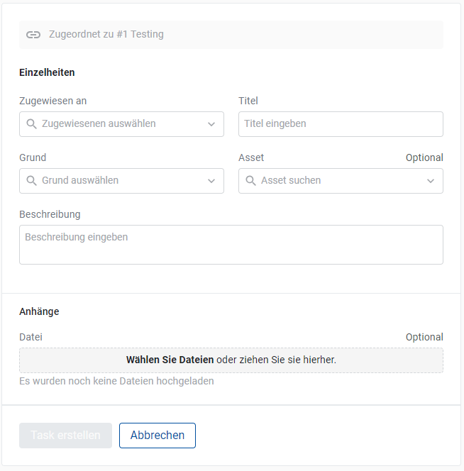 Optional: Hängen Sie ein Asset an und fügen Sie eine Datei hinzu, falls erforderlich.