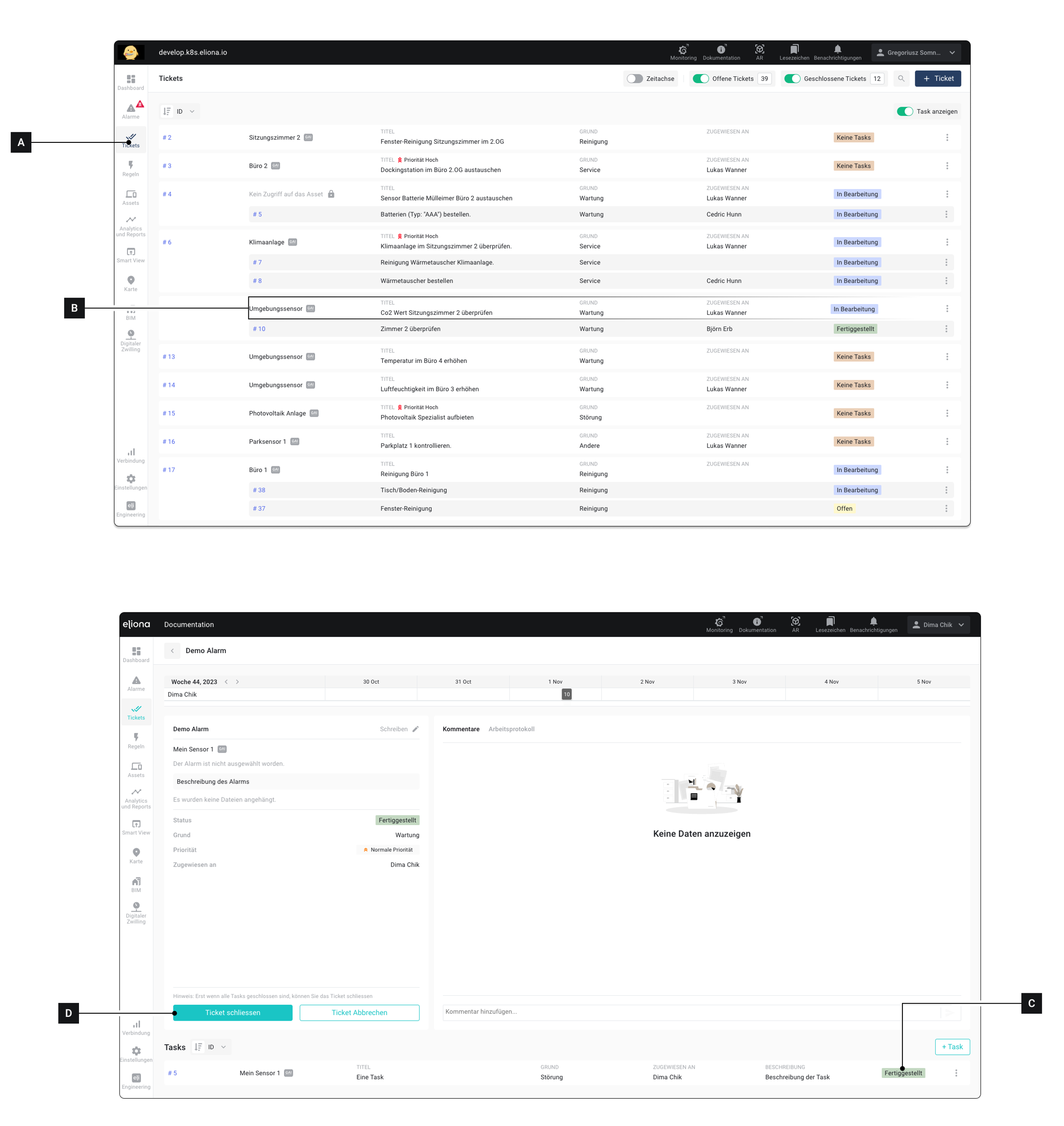 Vergewissern Sie sich, dass alle Tasks die diesem Ticket zugeordnet sind den Status Fertiggestellt [C] haben