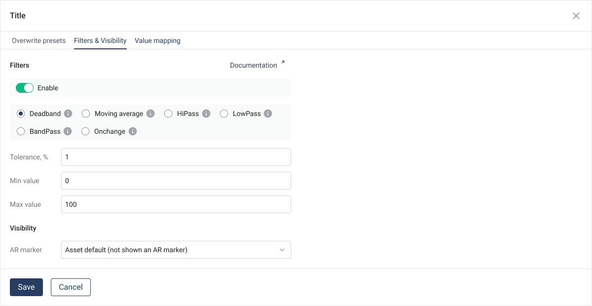 Der Filter-Service bietet eine umfassende Auswahl an Filtern, die auf eingehende Daten angewendet werden können. Diese Filter sind darauf ausgelegt, die Qualität und Relevanz der gespeicherten Daten zu erhöhen, indem sie nur signifikante Änderungen und wichtige Informationen durchlassen. Daten werden nur dann in der Datenbank gespeichert, wenn sie den Filter passiert haben, was bedeutet, dass der Filter erst nach der Berechnung auf den Wert angewendet wird.