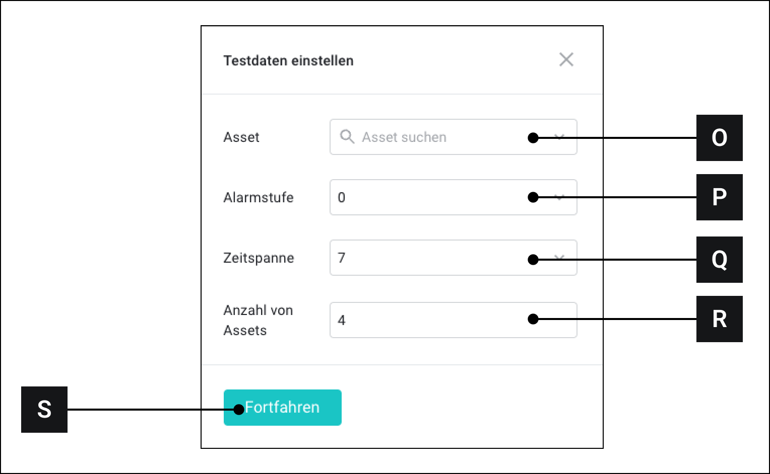 Klicken Sie auf Testdaten einstellen [G] ▷ Das Fenster "Testdaten" erscheint (Abb. 5)