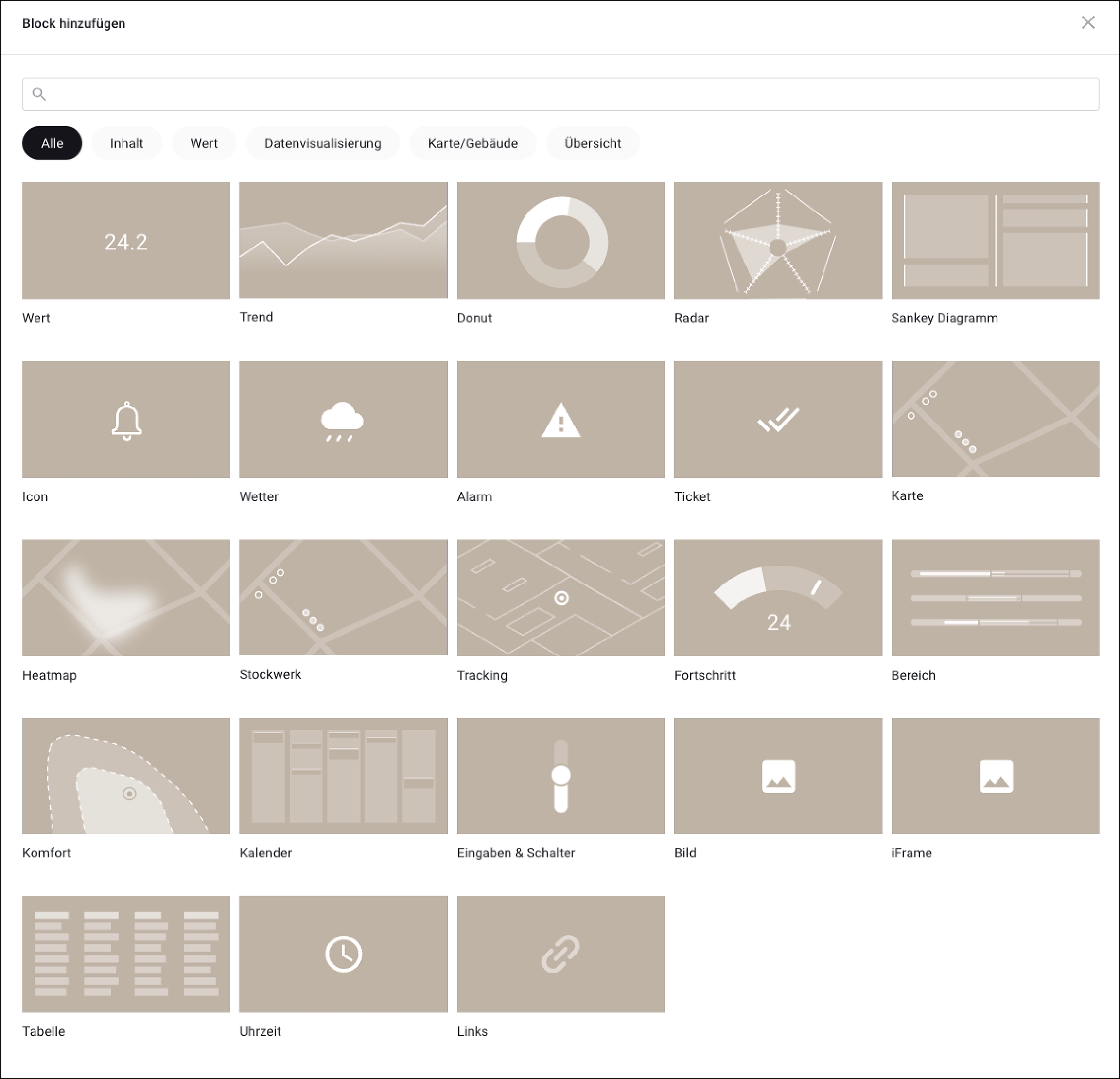 Klicken Sie auf [F], um dem neuen Widget das erste Modul hinzuzufügen. ▷ Die Modulauswahl (Abb. 3) erscheint