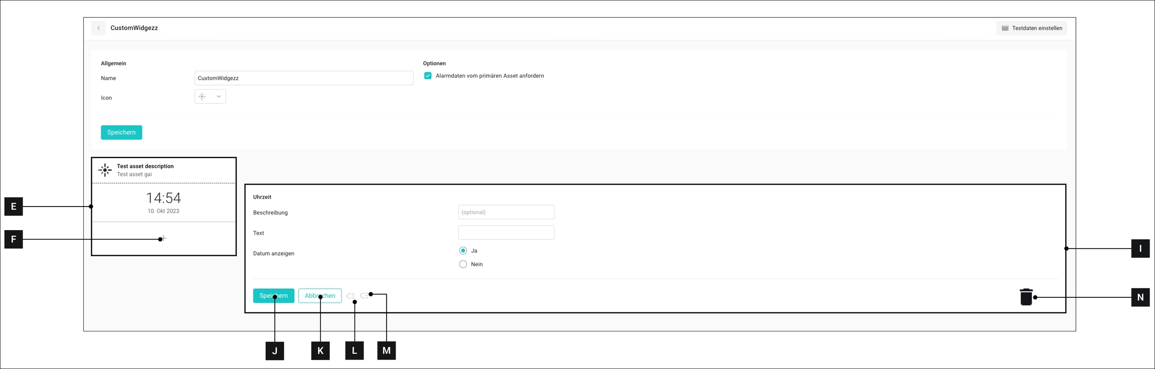 Klicken Sie auf das Benutzerdefinierte Widget, für das Sie Testdaten einstellen wollen