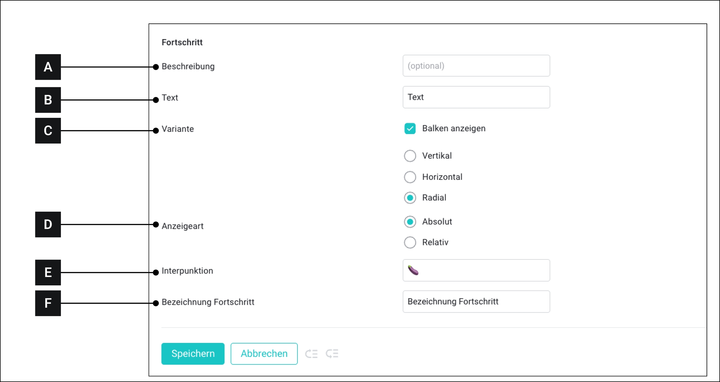 Das Modul "Fortschritt" bietet verschiedene Darstellungsarten für Fortschritte oder Füllstande an.