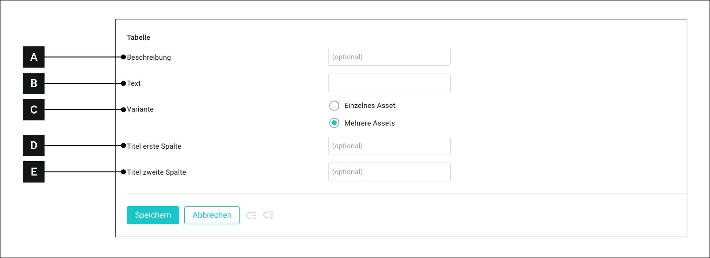 Das Modul "Tabelle" zeigt die letzten Daten an, die ein oder mehrere Assets gesendet haben an.