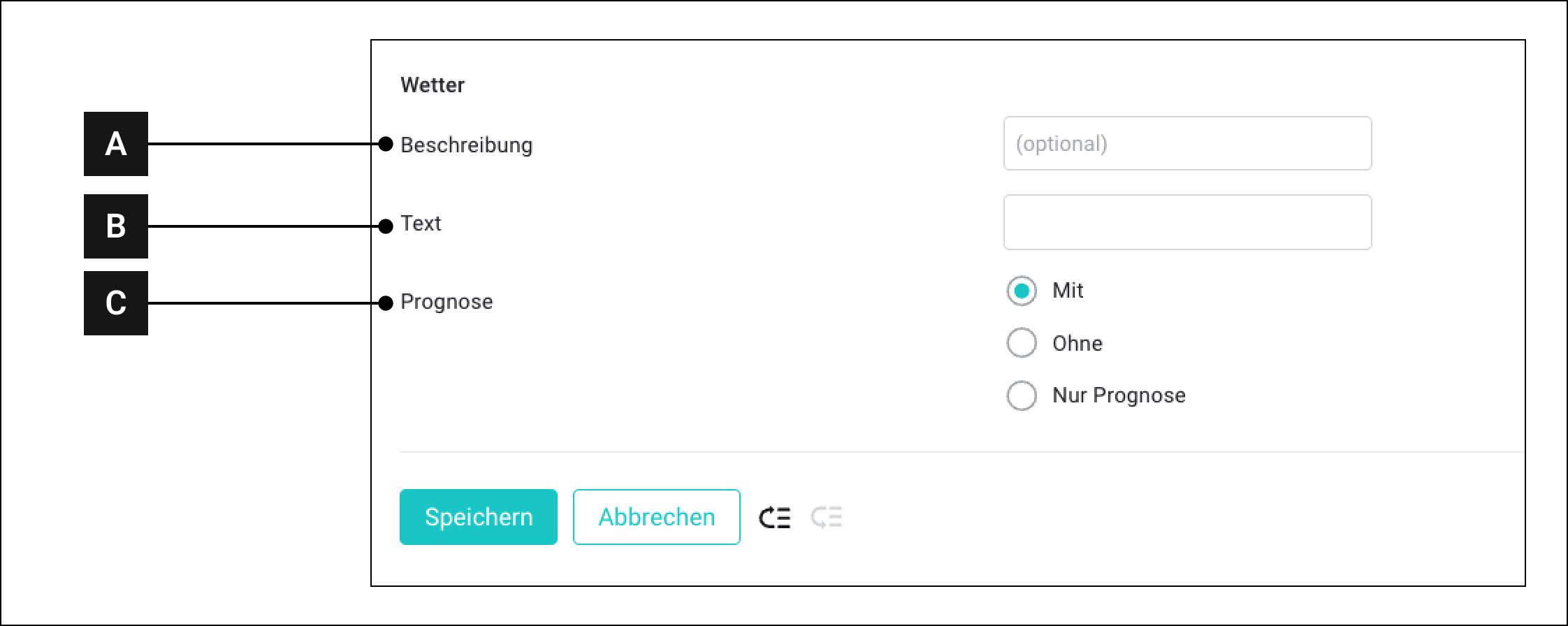 Mit dem Modul "Wetter" kann das Wetter eines Ortes in einem Widget angezeigt werden.