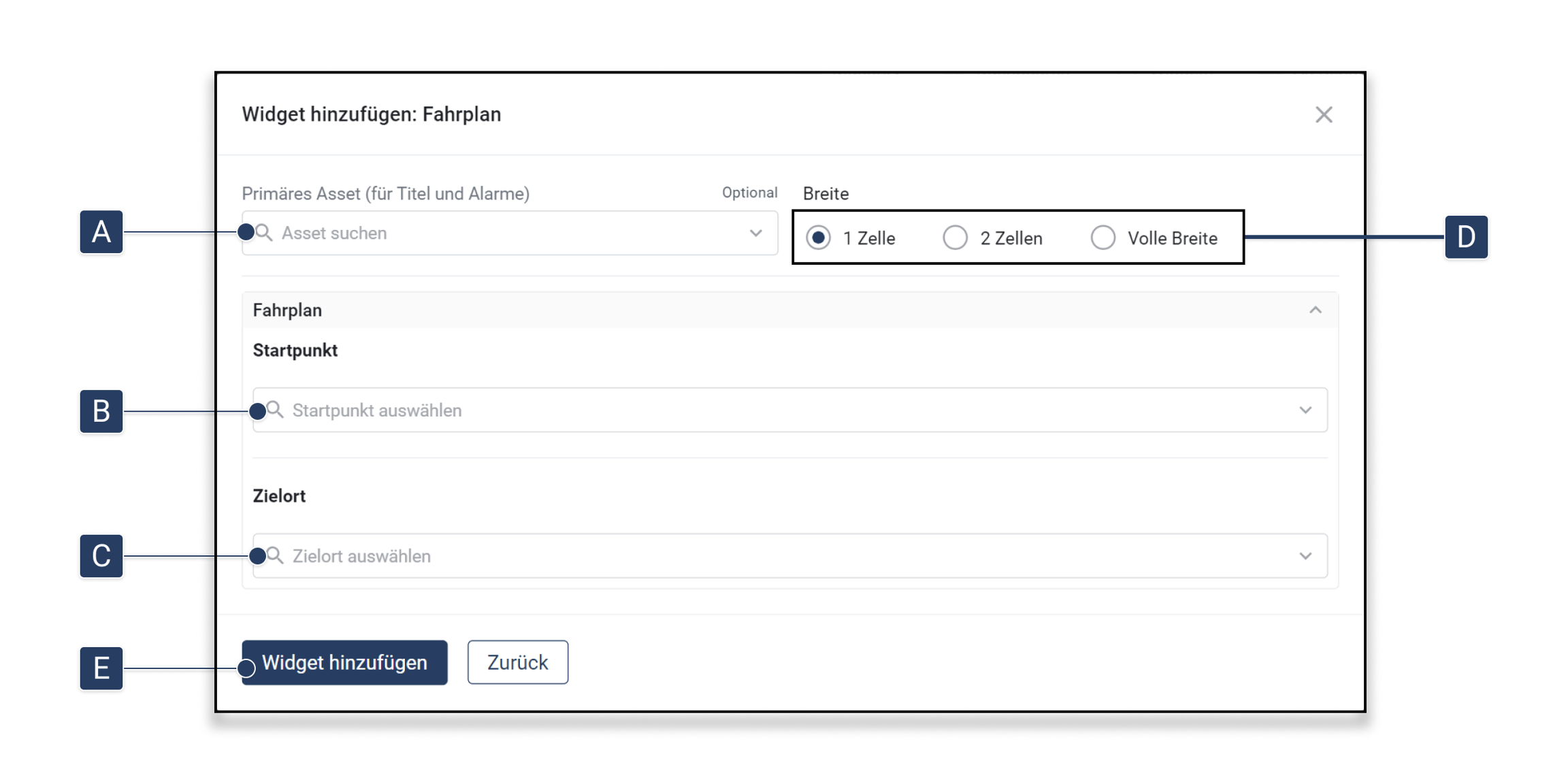 Wählen Sie in [D] aus, wie viel Raum das Widget auf dem Dashboard einnehmen soll.