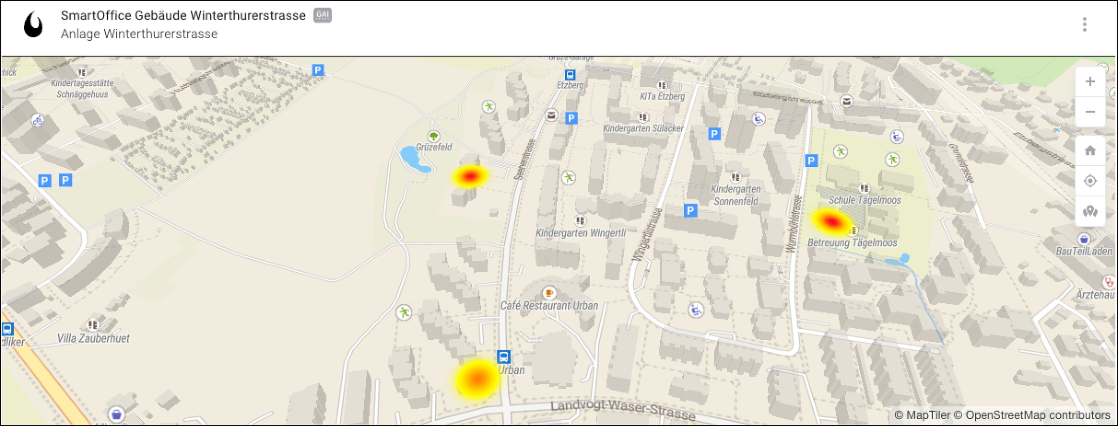 Das Widget "Heatmap" visualisiert Werte durch Farbbereiche auf einer Karte.
