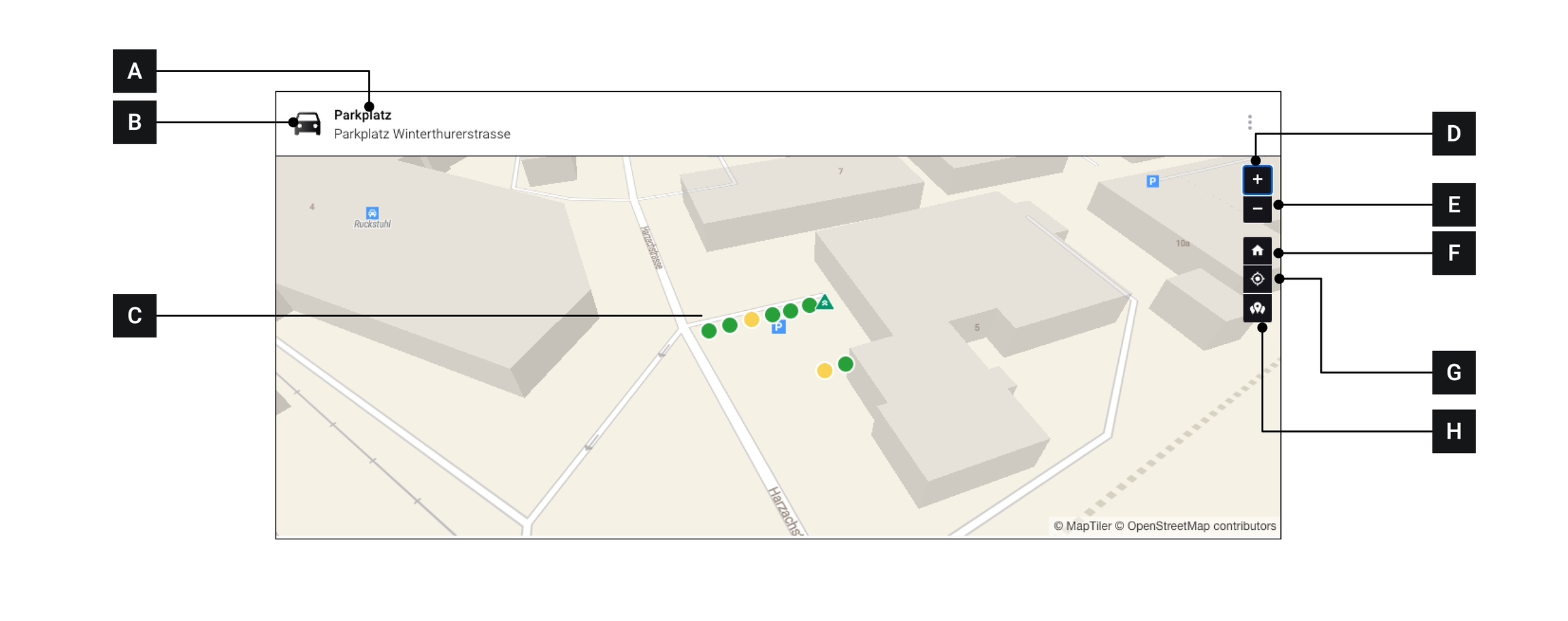 Das Widget "Karte" zeigt einen Kartenausschnitt mit den darauf platzierten Assets.