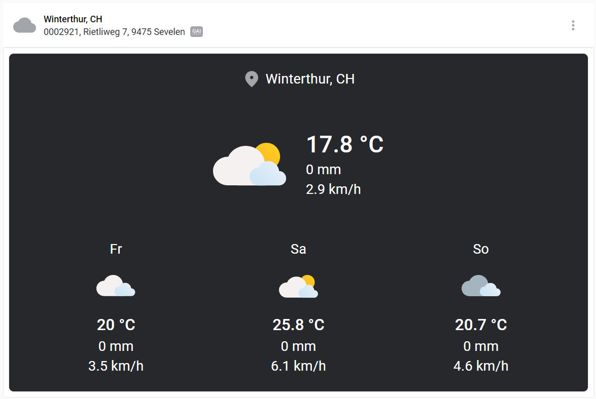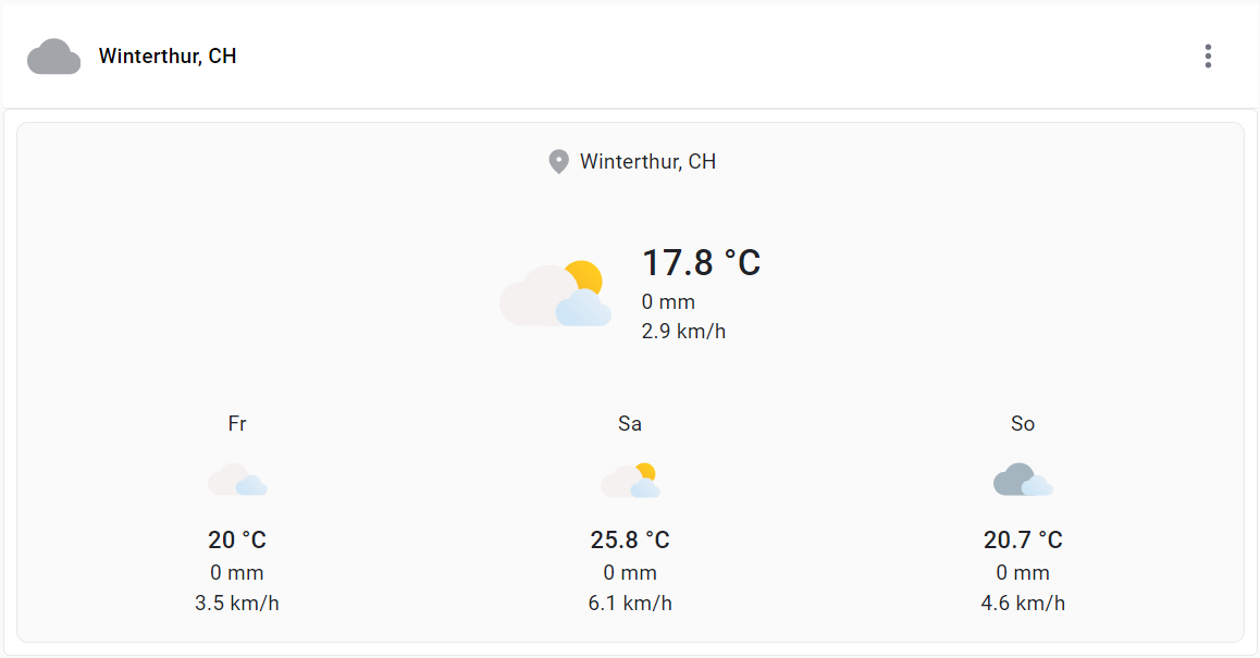 Das Widget "Wetter" zeigt das Wetter für einen beliebigen Ort an.