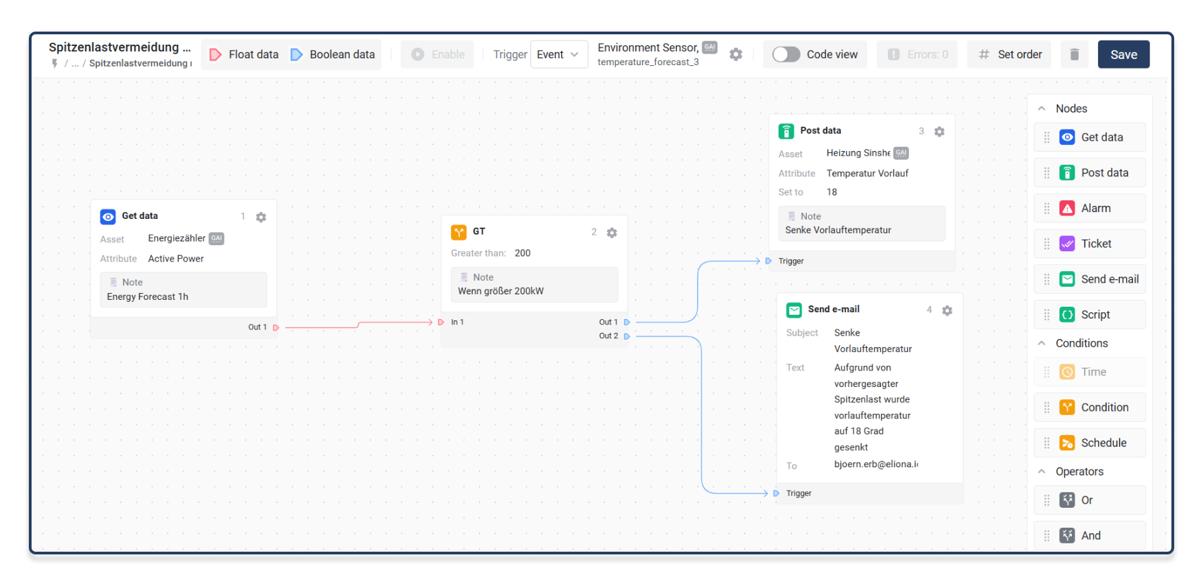 Optional: E-Mail Node informiert das Energieteam proaktiv.