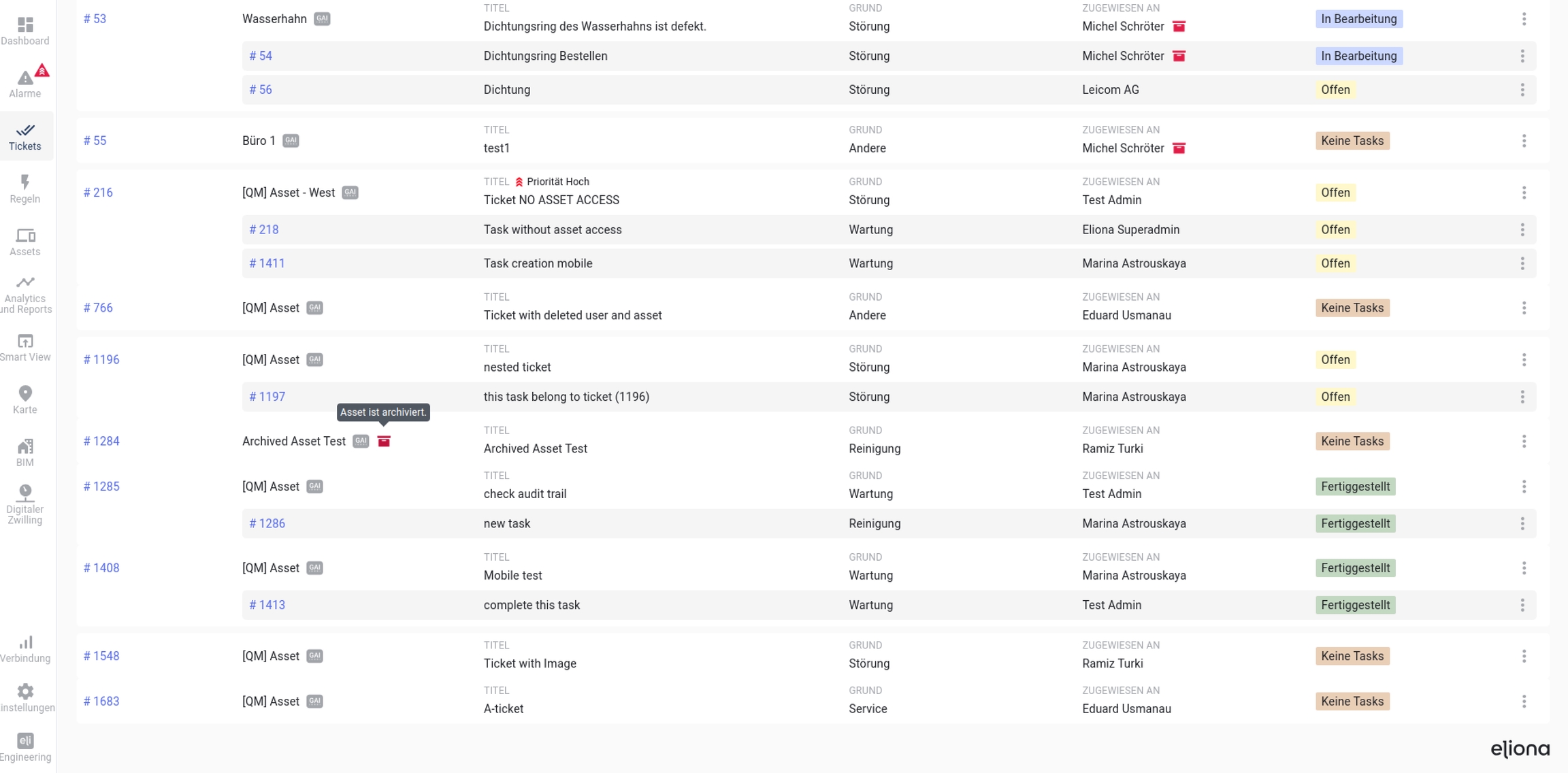 Wir haben verändert, wie eliona Verweise auf archivierte Entitäten (z.B. Assets oder Nutzer) darstellt.