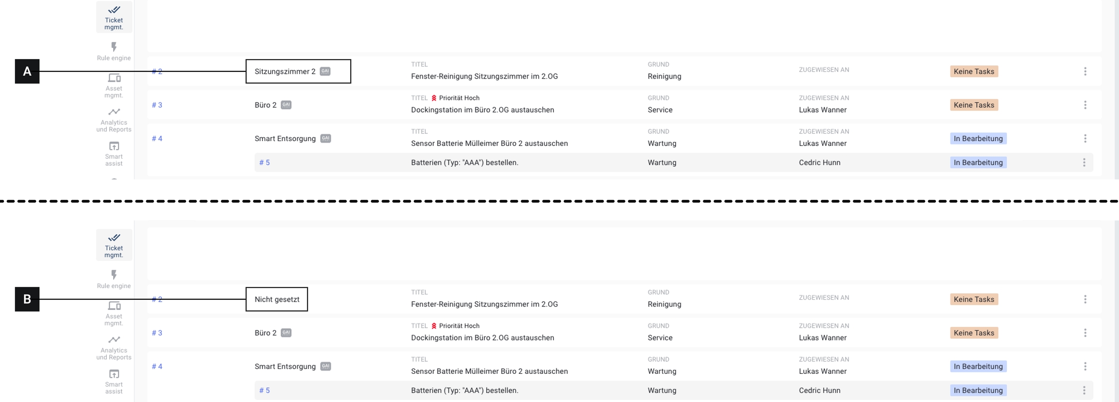 Im Asset Management steht nun eine flexible Spaltenkonfiguration zur Verfügung, mit der die angezeigten Informationen individuell angepasst werden können. Zusätzlich lassen sich nicht überwachte Statusboxen ausblenden, um die Ansicht übersichtlicher zu gestalten.